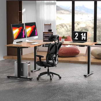 Large Ergonomic L Shape PC Laptop Computer Desk Dual Motor Standing Office Corner Desk Electric Height Adjustable L-shaped Table